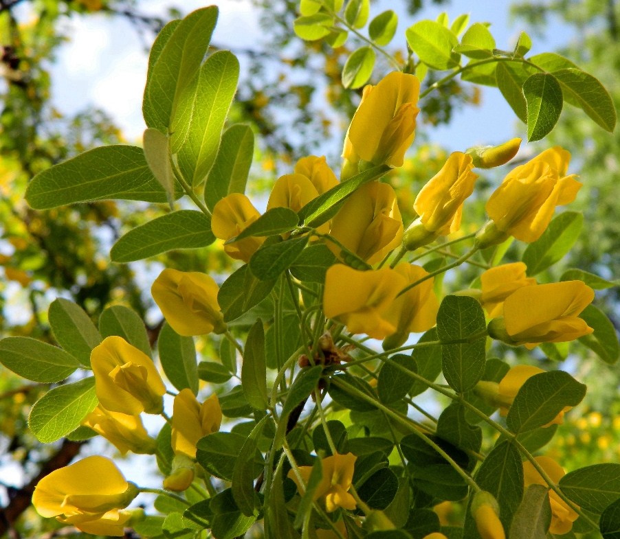 Акация желтая Лорберги (Lorbergii), также известная как древовидная Карагана, представляет собой компактное декоративное деревце с изящной ажурной кроной, достигающее высоты 2-2,5 метра. Листва светло-зеленого оттенка, узкая и элегантная. Цветки мотылькового типа, ярко-желтые, мельче, чем у основного вида, часто собраны в пучки. Цветение начинается после полного распускания листьев и продолжается около двух недель.
