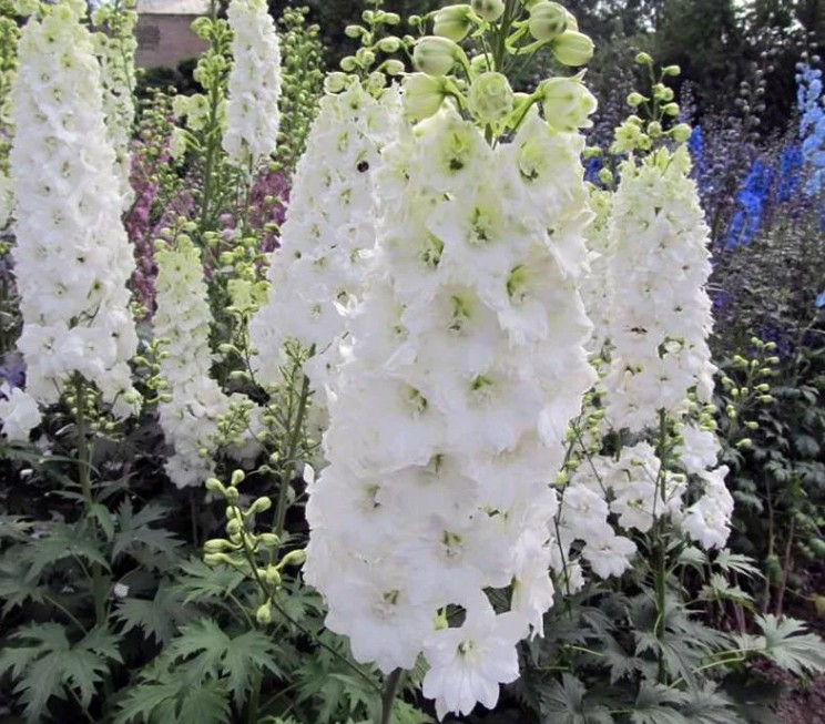 Дельфиниум Пацифик Джиант (Pacific Giant Camelliard) с белыми цветками – это великолепное растение, которое станет украшением любого сада. Эти дельфиниумы часто используются в ландшафтном дизайне для оформления бордюров, цветников, парковых зон и приусадебных участков. Они прекрасно смотрятся на заднем плане цветочных композиций, а также вдоль заборов и стен. Подходят как для одиночных, так и для групповых посадок, особенно эффектно выглядят в сочетании с другими сортами дельфиниумов.