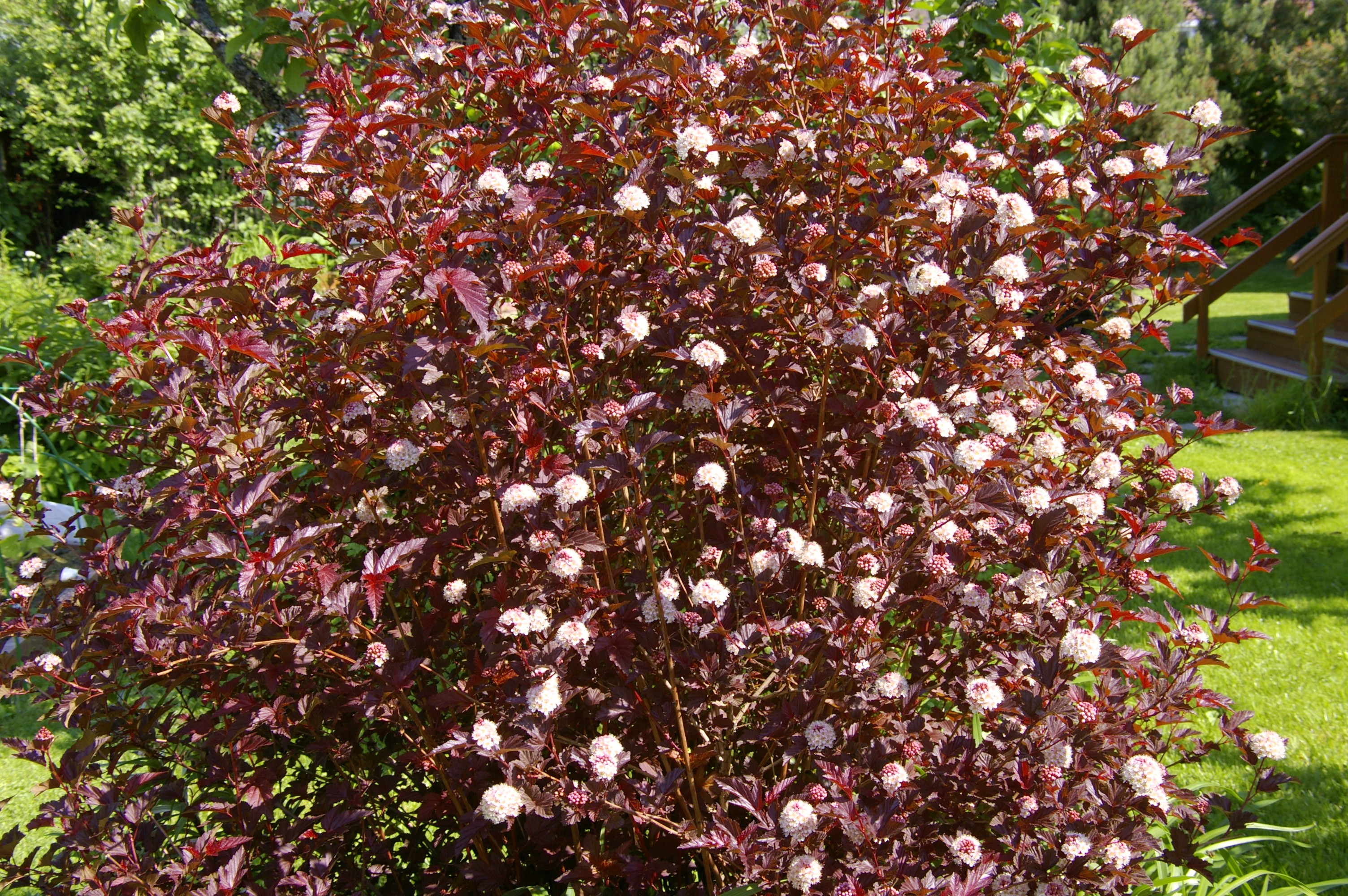 Саженец пузыреплодника калинолистного сорта Леди ин Ред (Lady in Red) представляет собой относительно новый и весьма привлекательный вид. Его морщинистые листья окрашены в насыщенный красный цвет, который может доходить до свекольного оттенка, придавая кусту особую декоративность.