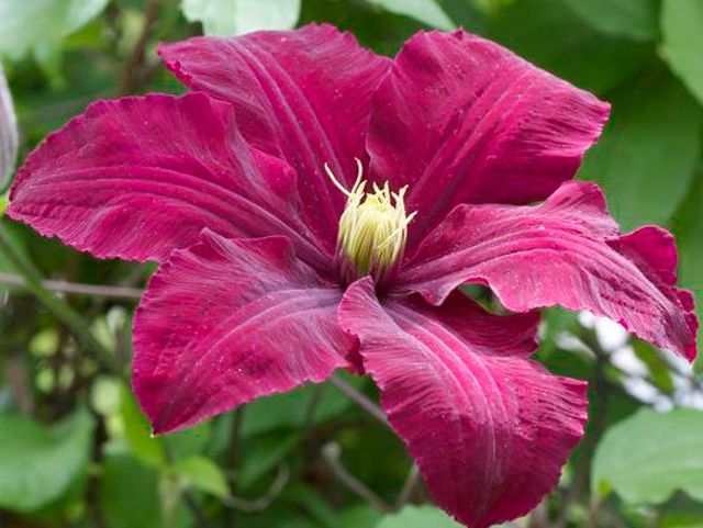 Клематис Ниобе - это один из самых востребованных сортов в мире, отличающийся насыщенно-тёмно-красными цветками, которые в начале цветения кажутся почти чёрными, с яркими жёлтыми тычинками. Этот сорт радует обильным цветением в июне, а затем повторно, но менее интенсивно, в августе-сентябре. Сорт был выведен в Польше.